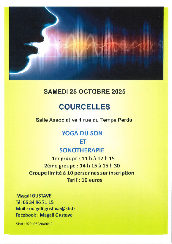 Une nouvelle séance de sonothérapie est organisée le samedi 25 octobre 2025 à la salle associative de Courcelles.